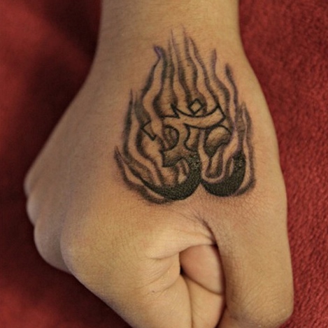 「 ॐ मणि पद्मे हूँ」中的第一個字,讀音為 Om = 嗡 = 唵